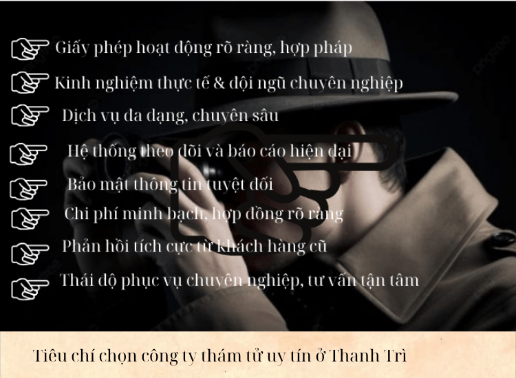 Tiêu chí chọn công ty thám tử uy tín ở Thanh Trì