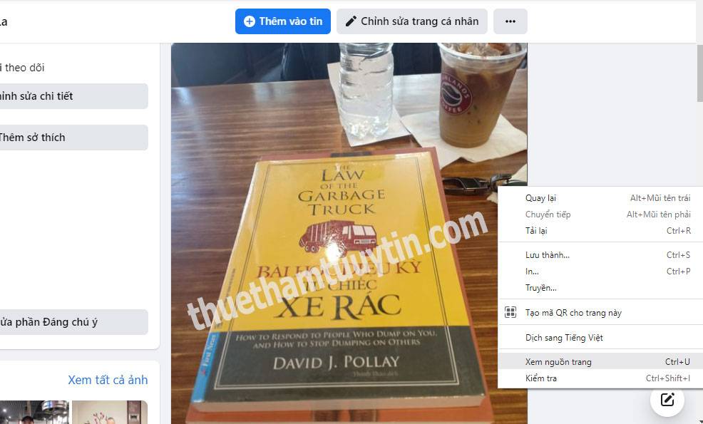 Bước 1: Đầu tiên việc bạn cần làm là mở một trình duyệt web lên và sau đó vào trang facebook cá nhân của mình, sau đó bạn chọn một khoảng trống rồi click chuột phải (hoặc bạn nhấn phím Ctrl + U) bạn chọn View Page Source(Xem nguồn trang)