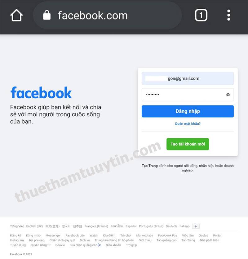 Bước 2: Xong bước đầu cài đặt trên chrome, bước 2 này bạn truy cập vào trang facebook.com và đăng nhập giao diện như trên máy tính, nếu giao diện không giống như hình dưới đây thì bạn xoá cookie đi và cài lại bước 1 nhé.