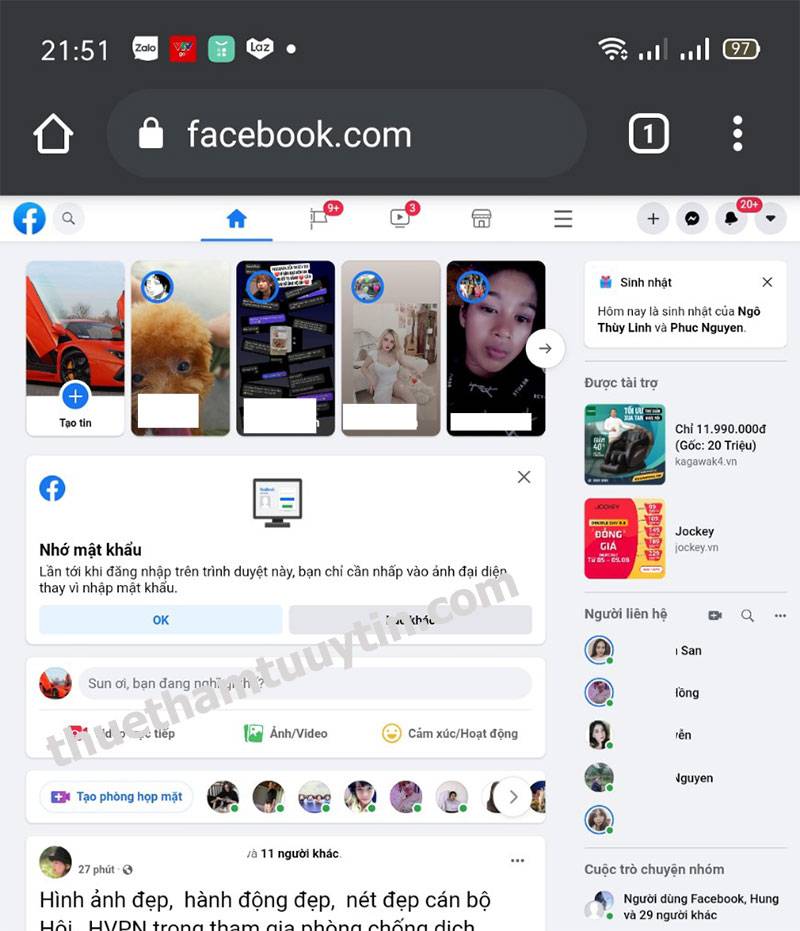 Bước 8: Sau khi nhấn ok ở bước 7 thì nó sẽ hiện ra một trang facebook cá nhân mà hay vào xem tường facebook của bạn nhiều nhất.
